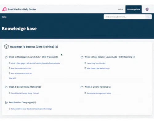 On-Demand Training Vault: Step-by-step video tutorials and guides on using the CRM, launching ads, and more.